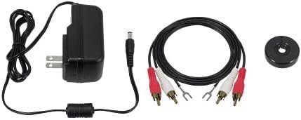 - Includes: USB cable, detachable RCA output cable (dual RCA male to dual RCA male), AC adapter, 45 RPM adapter, counterweight, felt mat, and removable hinged dust cover