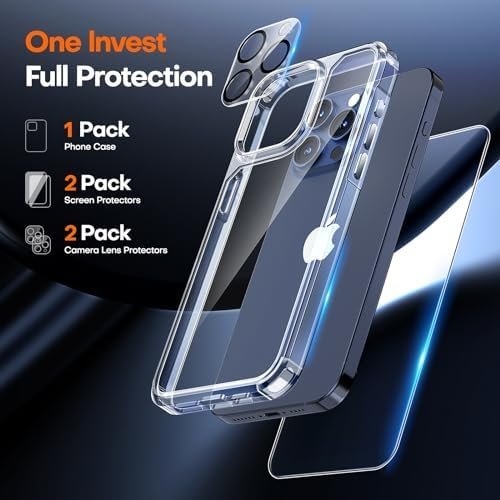 - 5-in-1 360° Full Protection This Shockproof for iPhone 15 Pro Case with 2 Pcs High Quality 9H Tempered Glass can protect your phone screen from scratch and broken but ultra-thin, comfortable and sensitive touch make you feel as nothing on screen. Provide 2 Pcs Camera Lens Protector that can protect the camera 100% and will not affect the quality of the photo.